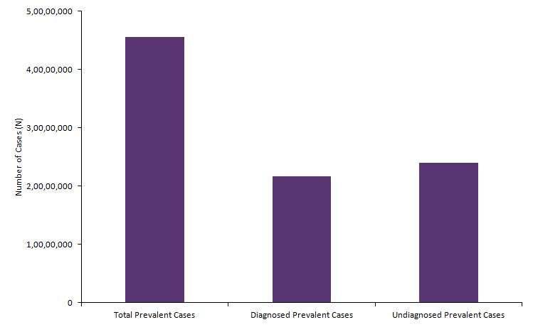 Despite increased awareness of the disease, it is still one that remains mostly undiagnosed. Figure 1 presents the diagnosed and undiagnosed prevalent cases of osteoporosis in men and women, ages ≥30 years, in the seven major markets (7MM: US, France, Germany, Italy, Spain, UK, and Japan) in 2017. In 2017, GlobalData epidemiologists forecast that there were more than 45,000,000 total prevalent cases of osteoporosis in the 7MM; more than 50% of these cases went undiagnosed.