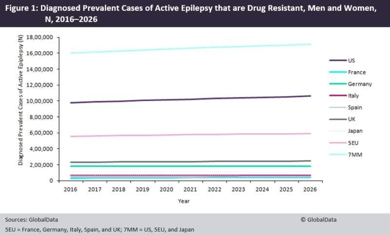 By GlobalDataFigure 1 below shows GlobalData’s forecast for diagnosed prevalent cases of active epilepsy that are drug resistant in the 7MM for 2016–2026.