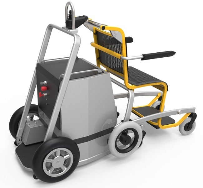 The Aisle Mobby is a boarding transport chair designed for air travel. The chair is 38cm-wide when measured from wheel to wheel, meaning it can fit the aisle of most passenger aeroplanes.