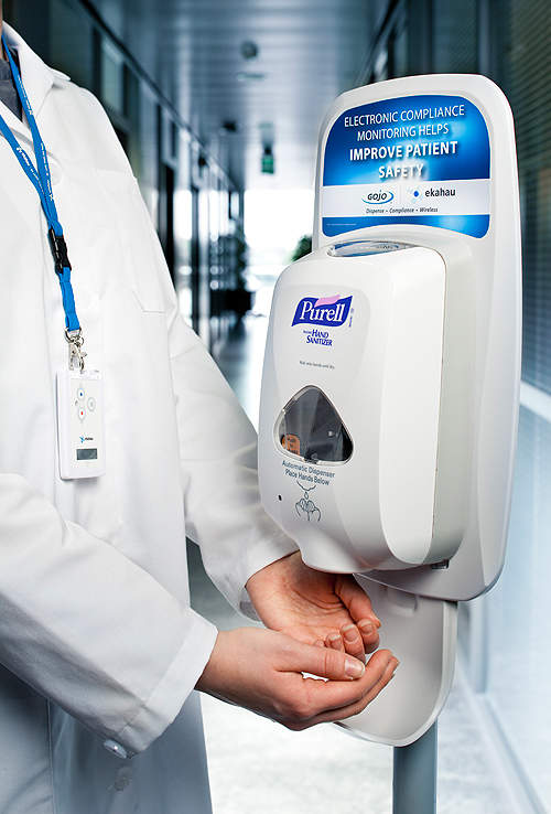 The staff badges enable the RTLS system to automatically monitor staff-patient interactions, as well as when the staff member washes his or her hands before and after interacting with a patient. Because the Ekahau RTLS runs over the existing Wi-Fi network, the hand hygiene solution is cost-effective and easy to deploy.