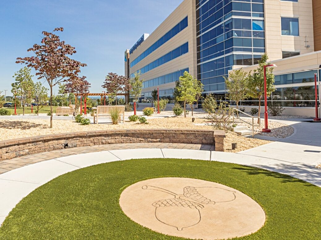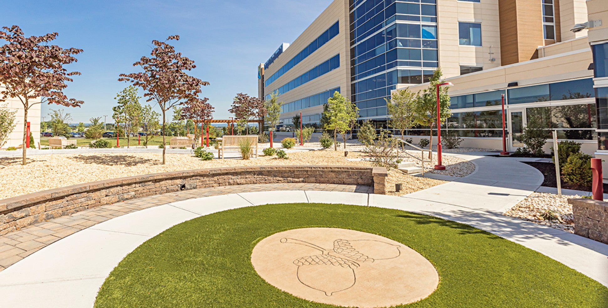 The newly-built healing garden is a space for meditation for patients and visitors. Windows within the infusion bay and some inpatient rooms have been designed to give patients a view of the healing garden.