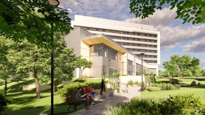 Besides, the 448,819ft2 hospital will have a dedicated parking garage space to accommodate up to 673 cars as well as a 200-car surface parking area.
