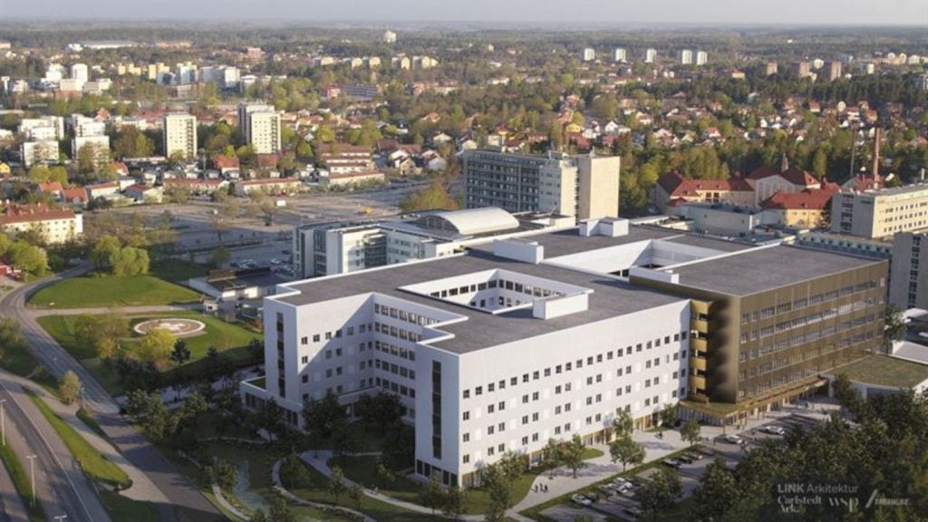 Spanning approximately 75,000m², the Region Västmanland's new hospital will feature services, including radiology, operating rooms, emergency and maternity clinics, intensive care, and general ward beds.