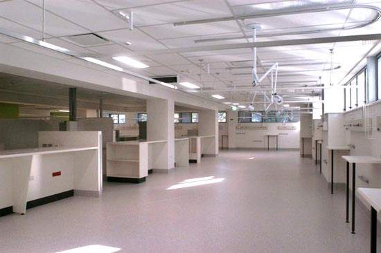 Emergency has three resuscitation bays equipped with pendants containing medical gases, power outlets and clamps and holders for all resuscitation equipment, e.g. ventilator, monitor. Running over two of the bays is a ceiling mounted x-ray machine.