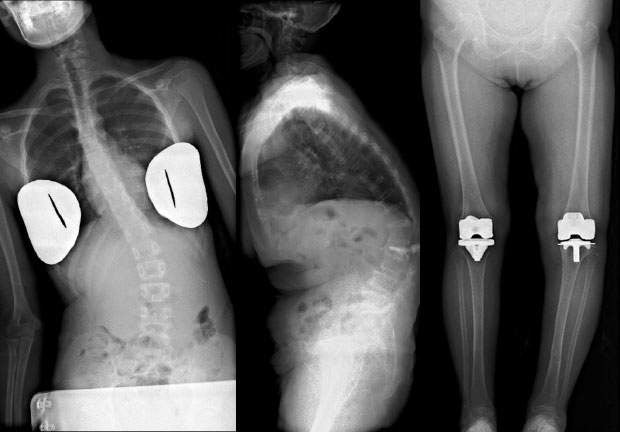 Long-length imaging is an essential radiography technique in the field of orthopedic surgery for the diagnosis of scoliosis and alignment measurements on the full length of the lower limbs. At this hospital, we conduct radiography with multiple IPs loaded in a long-length cassette and join the images together when reading them.
