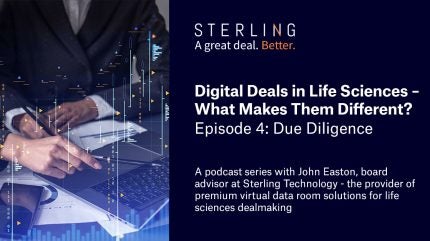 Welcome to the fourth of five episodes in our podcast series “Digital Deals in Life Sciences – What Makes Them Different?” Transactions involving digital assets are becoming an increasing focus for pharmaceutical companies. In this series, life sciences industry M&A veteran and Sterling Technology board advisor John Easton discusses how these differ from traditional life science deals, and what both parties should look out for to increase the chances of deal success, mitigate risks, and avoid failure.
